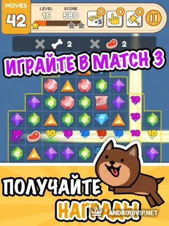 В Dog Game присутствует мини-игра, проходя уровни которой, можно заработать необходимое количество внутриигровой валюты. За неё можно совершать покупки в магазине. Там можно найти не только огромное количество аксессуаров для своего четвероногого друга, но и разнообразные игрушки, с которыми ваши пушистые друзья смогут играть и весело проводить время.