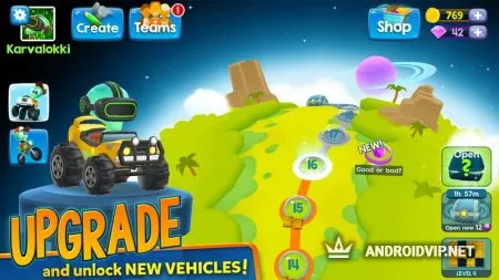 Геймеры могут принять участие в забавных гоночных заездах, сев за руль супермощных байков, багги, спортивных автомобилей и других средств передвижения, преодолевая крутые виражи сложнейших трасс. Приготовьтесь к тому, что на пути будут встречаться различные преграды, хитроумные ловушки и сооружения, которые будут мешать продвижению.