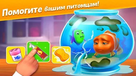 Параметр рыбок улучшается за счёт покупки разных видов рыб. Опять же, количество не ограничено и данный параметр достаточно легко повысить. После покупки новые обитатели тотчас появятся в аквариуме. Иногда вам будут даваться подсказки, что лучше всего купить для текущего аквариума. Они будут отображаться в виде «мыслей» над рыбками. Как только все три параметра будут на максимуме, откроется следующий аквариум с новыми испытаниями.
