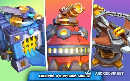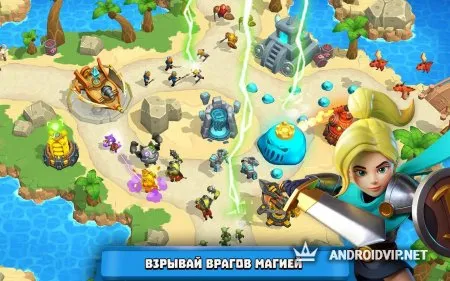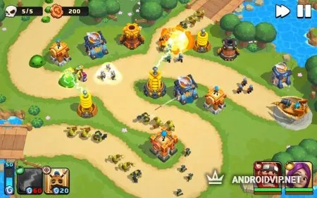 В игре представлено 10 различных башен, которые предстоит размещать на игровом поле во время сражения. Каждая башня имеет свои характеристики. 6 героев, 12 заклинаний и ещё 6 элементов для башен позволяет создавать различные стратегии и комбинации, которые будут эффективны в одном случае, а в другом будут бесполезными.