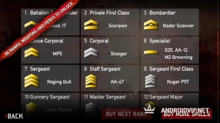 По мере прохождения игры, вы будете получать различные звания и получать игровую валюту. За саму валюту игрок сможет купить себе любое оружие, начиная от MP5, который часто используется сотрудниками SAS на заданиях, заканчивая российским «Скорпионом» с отличной скорострельностью.