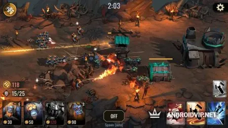 Сражения ведутся в формате стенка на стенку. На одной стороне поля боя будут находится ваши строения и юниты, а на другой стороне будет находится противник. За победы вы будете продвигаться ввысь по таблице рейтинга, а также получать полезные награды.