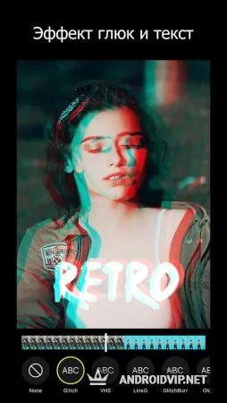 Прежде всего, он заточен под два эффекта, которые именуются "глитч" и "вэйпорвэйв". Эти два эффекта начали набирать свою популярность относительно недавно. Первый эффект представляет из себя имитацию 3D-анаглифа, а второй подразумевает добавление на объекты, запечатленные на видео, своеобразной сетки, которая имеет свечение.