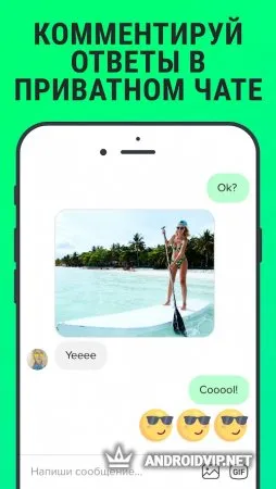 Присутствует система друзей и личных сообщений, чем-то похожая на Direct в Instagram. Вы также можете добавлять пользователей в друзья, общаться с ними в приватном чате, комментировать ответы отправлять друг другу различные картинки и видео.