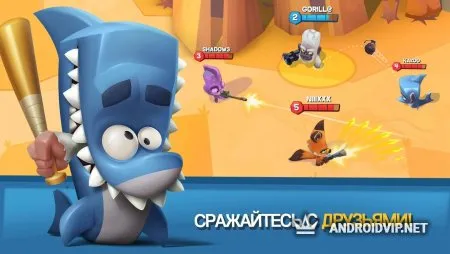 Не играйте в одиночку, вступайте в кланы! Рейтинговая таблица добавляет дух соревнования. Чем выше позиция Вашего клана, тем крупнее будут призы в конце месяца. Помимо классического Battle Royale, присутствуют и другие режимы, в которые можно играть с друзьями или участниками клана. За командные сражения с товарищами по клану будет прибавляться большее количество очков рейтинга, нежели сражения со случайными бойцами. Устанавливайте Zooba: Битва Животных и побеждайте своих соперников с помощью различных тактик и орудий!