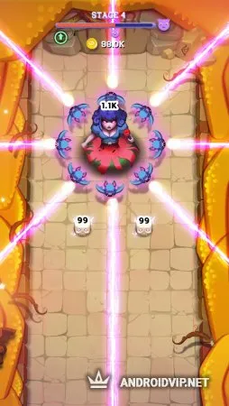 Набирая в свой отряд все больше и больше напарников, можно комбинировать различные способности. Используя разнообразные комбинации, можно вывести формулы эффективного нанесения урона. Чем больше урон – тем легче пройти текущий уровень, которых в игре более 100. Сложность нарастает с каждым уровнем, поэтому персонажей необходимо улучшать с помощью заработанных наград.