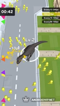 Но улучшать навыки можно и с помощью заработанной валюты. Можно улучшить силу, скорость и прибыль от разрушений. Действует принцип снежного кома: чем больше приобретено улучшений – тем быстрее идёт прогресс. Помимо вашего динозавра, на карте будут устраивать хаос ещё 3 других опасных существа. Если они будут сильнее, то готовьтесь бежать со всех ног, иначе можно начинать прохождение заново. Но приобретая все большую силу, побеждать других динозавров будет значительно легче, пусть и за ними придётся немного побегать.