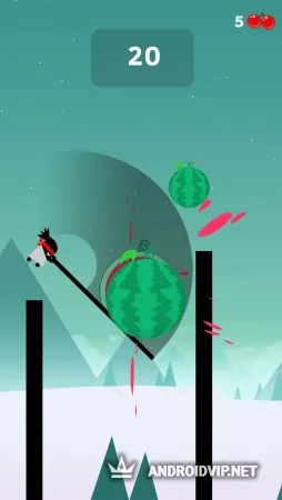 Главный герой – ниндзя, который путешествует по миру. На его пути начали встречаться преграды в виде больших колонн, которые мешают движению. Между колоннами – пропасть. Ваша задача – провести героя через эти платформы, не упав в пропасть. Однако, помимо перемещения между колоннами, Вам также предстоит кромсать фрукты на мелкие кусочки. В этих двух задачах поможет необычный меч ниндзя. Его необычность определяется возможностью изменять размер.