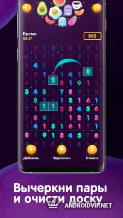 Правила игры довольно простые: вы должны складывать одинаковые числа или же числа, которые образуют 10 в сумме. К примеру, вы можете совместить не только 2 и 2, но 4 и 6, а два числа можно удалить, если нажать на них. Пары чисел должны быть рядом, а пересекать их можно только по двум направлениям – горизонталь и вертикаль.