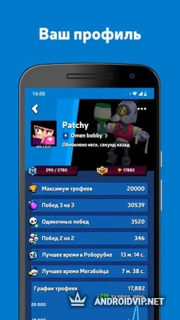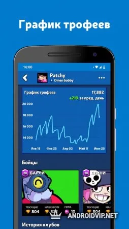 Вы будете в курсе всех своих данных, таких, как количество побед, проигрышей, собранных трофеев, личные рекорды по времени и так далее. Также приложение покажет таблицу лидеров по клубам, игрокам и бойцам.