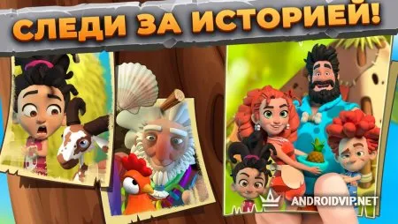 В отличии от популярных игр про фермы, здесь вы сможете выращивать экзотические культуры, а также разводить необычных животных. Остров тропический – фермерство здесь специфичное. Продвигаясь по шкале развития, вы сможете познакомиться с главными героями поближе – они расскажут много нового и полезного.