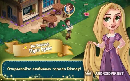 Пригласить в свой замок всех принцесс, и не только их. К примеру, к вам в гости обязательно заглянет возлюбленный Рапунцель – Флин Райдер. Можно просмотреть уже известные из мультфильмов истории героинь, а можно увидеть совершенно новые сюжетные линии, наслаждаясь другими приключениями принцесс и их друзей.