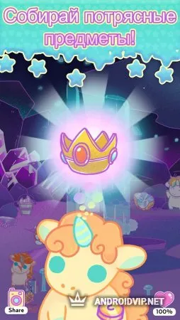 Функция «играть» даст вам на выбор несколько мини-игр, за успешное прохождение которых вы будете получать внутриигровую валюту – золотые монетки. На эти монетки можно покупать предметы для украшения внешнего вида единорога. Ещё одна функция – селфи. Она перемещает вашего единорога на «холст» камеры, чтобы вы смогли сфотографироваться вместе с персонажем.