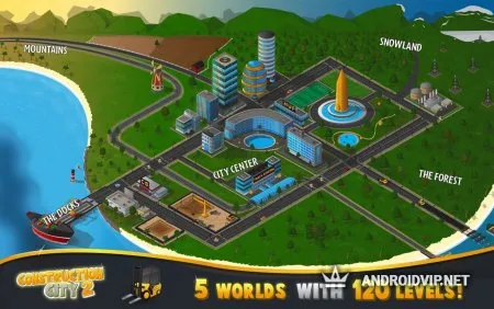 Игра приготовила для вас 120 заданий в пяти мирах. Где-то нужно будет передвинуть ящики с помощью погрузчика, где-то перенести металлические балки краном, а где-то даже необходимо будет затушить начавшийся пожар. Возводите мосты, здания.