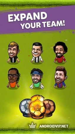 За валюту, полученную за голы вы сможете покупать дополнительные улучшения, которые могут дать вам пассивный доход или ускоренный рост футболистов на поле. Чем выше ваш уровень – тем выше доход. Повышение уровней осуществляется за счет приобретения новых футболистов. К тому же, за несколько повышений на ранних уровнях вы будете получать дополнительные ячейки для расстановки игроков.
