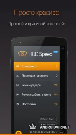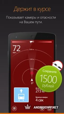 Оно позволяет использовать ваше устройство как проекционный дисплей – достаточно закрепить его на лобовом стекле с внутренней стороны машины. После установки, запустите приложение. Вы сразу же увидите всю информацию. У HUD много функций, но главная из них – спидометр. Скорость определяется с помощью GPS. К тому же, этот АнтиРадар способен показывать ближайшие стационарные камеры, местоположение которых берётся из базы.