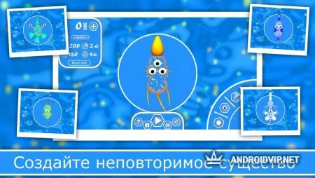- Множество вариантов создания существа со своими параметрами и внешним видом;