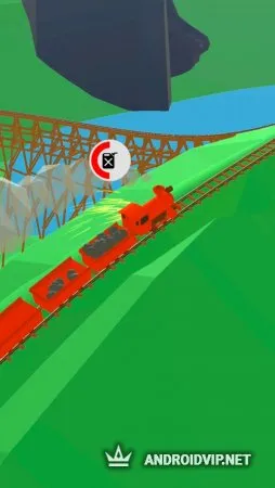 Off the Rails 3D - игра от Kwalee Ltd, где в центре внимания паровоз, передвигающийся по рельсам на холмистой местности. Для успешного преодоления дистанции старайтесь рассчитывать скорость идущего состава, к примеру при спуске, чтобы он не сошёл с рельс на высокой скорости.