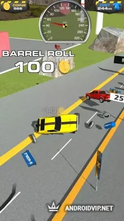Чем эффектнее и безумнее будет ваше падение, тем больше монет вы получите. За них можно приобретать новые автомобили, различные усиления, бонусы и так далее. Дополнит и без того адреналиновую атмосферу гармоничная музыка и звуковые эффекты.