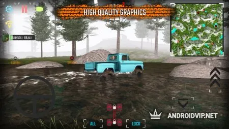 Разработчики улучшили графику, добавили множество живописных локаций с экстремальными зонами для прохождения. Кстати, проезд по воде и вязкой грязи выглядят очень достоверно. Для любителей супер сложных участков добавили режим преодоления скалиcтой местности. Получится ли у вас покорить гору?