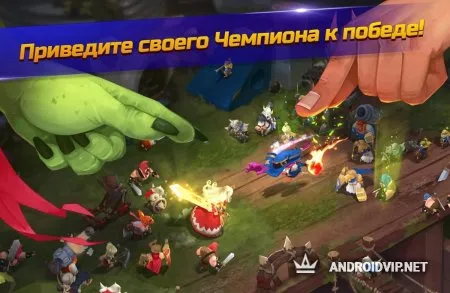 Используйте уникальные навыки и стратегии для победы в боях длительностью 6 минут. Также вы можете творить чудеса, чтобы помочь своей армии. Повышайте уровень чемпиона, его подручных башен и чудес и громите врагов!