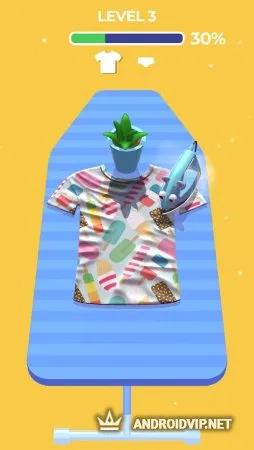 Perfect Ironing - это расслабляющая аркада, в которой вы будете заниматься глажкой вещей. Разместите на гладильной доске мятую после стирки вещь и придайте ей ухоженный вид при помощи утюга. Затем, успешно поглаженную вещь аккуратно сложите и поместите на полочку. Брюки, рубашки, платья футболки - все они нуждается в избавлении от неприятных складок.