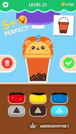 После успешного приготовления вы сможете открывать симпатичные крышечки к стаканам в виде котиков, обезьянок, львов и другие. Лёгкая игра с непринуждённой атмосферой которая придётся по вкусу как детям, так и взрослым. Благодаря простой графике игра хорошо оптимизирована. Если вам надоедает реклама, то просто отлючите wi-fi.