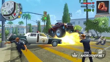 В игре внушительных размеров город, кишащий преступниками, реалистичный автомобильный трафик с возможностью угона машин, большое количество экзотического оружия, включая миниган, катану, бензопилу, огнемёт. Кроме тачек вы можете попробовать угнать целый танк или даже вертолёт!