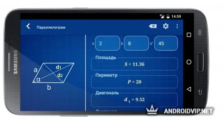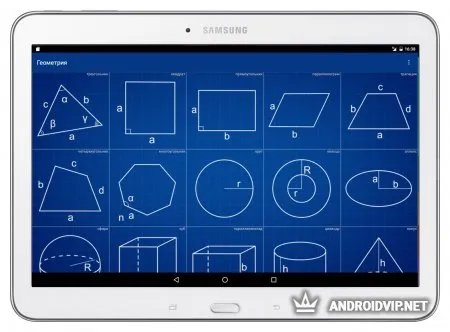 Геометрия - удобное приложение для расчёта геометрических фигур. Одноимённый предмет в школе частенько заводит в тупик учеников, ведь не секрет что эта наука достаточно сложная. Одной из ключевых возможностей программы является возможность пошагово решать задачи.