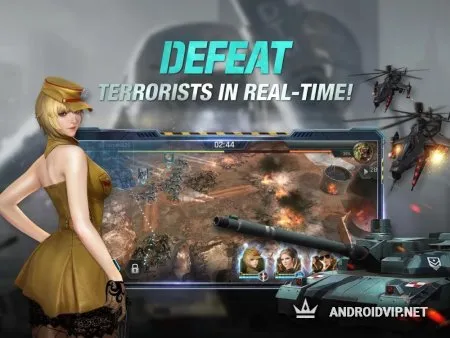 Создайте и развивайте во всех направлениях свою базу, тренируйте пехоту и формируйте десятки единиц современной военной техники. Направляйте их на юниты и здания врага, и побеждайте его с помощью своей уникальной тактики.