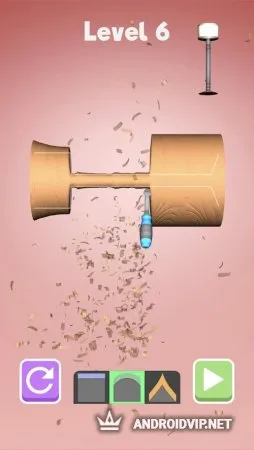 Wood Shop - игра в которой вы будете заниматься интересным ремеслом - резкой по дереву. После того, как вы начнёте игру, перед вами будет необработанное дерево и готовый вариант в правом верхнем углу. К такому результату, как там показано вам и необходимо стремиться.