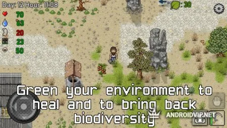 Вам предстоит сложная задача по возвращению жизни на родной планете. Возобновляйте зелёный и цветущий мир вокруг себя, сажайте деревья, растительность и восстанавливайте разнообразную биологическую активность. Выращивайте свой урожай, животных.
