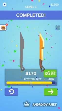 Нетребовательная графика с приятными цветами, атмосферная озвучка и простой игровой процесс позволят с пользой убить время. Проходите уровни, открывайте новые ножи, клинки, мечи и другое оружие.