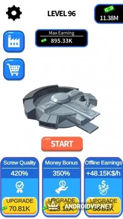 Не сложное управление, прикольные визуальные эффекты и аудио сопровождение. Насладитесь интересным процессом конструирования, зарабатывайте деньги и улучшайте свои производственные мощности.