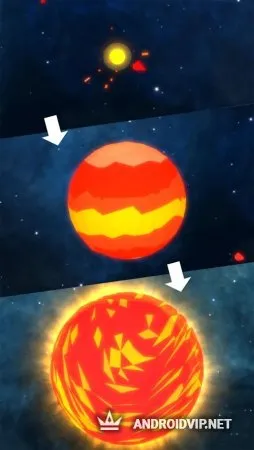 Данную игру можно смело отнести к idle, ведь какой-то особой цели в игре у вас нет, а бесконечное развитие присутствует. Можно создавать десятки планет, попутно развивая галактику. Как утверждают разработчики, в игре около 50 различных планет, которые доступны для размещения в вашем личном пространстве. Меркурий, Венера, Марс, Уран и другие планеты солнечной системы доступны для размещения. Кроме того, ради экспериментов вы можете устраивать столкновения. На протяжении всего развития игроку будут начисляться своеобразные очки, за которые можно покупать планеты, если вы играете в аркадном режиме. По мере наполнения галактики будут предоставляться различные знания про черные дыры, звезды, планеты и другие космические объекты.