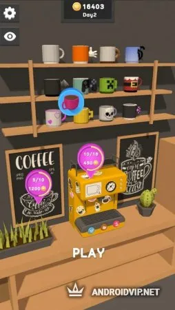 На заработанные деньги можно купить новое оборудование, которое позволит производить напитки в несколько раз быстрее или же делать их более вкусными, повесить несколько красивых картин на стены зала или же украсить внутреннее убранство кафе с помощью экзотических растений. Есть и другие полезности, которые можно приобрести за внутриигровую валюту, но все это работает по нарастающей системе, как и подобает многим механикам в Idle-играх: все больше и больше, но конца этому нет.