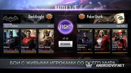 Injustice: Gods Among Us - файтинг-проект с элементами карточной игры от создателей консольной серии Mortal Kombat. Данная игра является полноценным проектом, но стиль прохождения, анимация движений и другие схожие элементы определенно позаимствованы от легендарного предшественника. Однако есть много индивидуальных качеств, которые неплохо выделяют эту игру на всеобщем фоне. Особенно для мобильной версии.