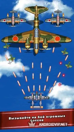 1945 - это авиационная аркада, которая перемещает игроков в год, считающийся победным в истории Второй Мировой войны. Однако, здесь исторический ход событий несколько искажен, но возможность полетать на большинстве моделей самолетов того периода остается. Стоит упомянуть, что геймплей сразу же напомнит вам классический вариант «shoot’em’up», в котором вам предстоит лишь перемещать главного героя по экрану и попутно нажимать на кнопку стрельбы, а все остальное двигается вперёд своим ходом.