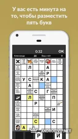 Игра начинается: каждому игроку выдаётся по 5 разных букв, которые необходимо разместить в сканворде за определенное время. Если один из игроков не успел, ход переходит к другому. Возможно, лучше сохранить какие-то буквы на следующий раунд, чтобы одержать победу. Тренируйте свою хитрость и смекалку, сражаясь с другими игроками!
