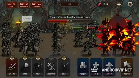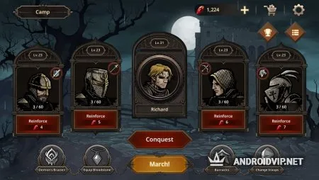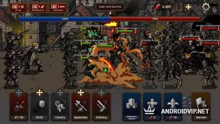 Сражайтесь с различной нечистью в виде воинов-скелетов, минотавров и других представителей тёмной стороны. Улучшайте своих солдат с помощью кровавых камней и выбирайте, какие именно умения они будут прокачивать. Также вы можете добывать экипировку в битвах с вампирами.