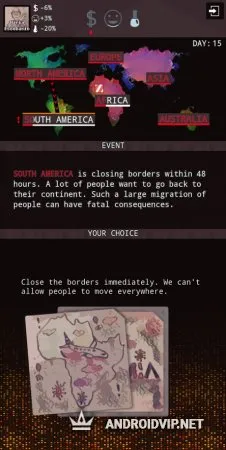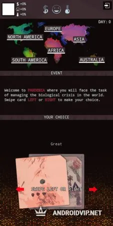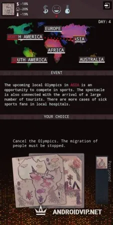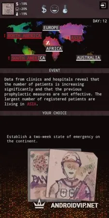 Держите контроль над своими финансовыми запасами, настроением людей и исследованиями вируса. Эта стратегия в духе Plague Inc. понравится всем, кто любит подобные игры, где нужно остановить пандемию, либо напротив - её развить. Предпринимайте ответственные, масштабные действия и посмотрите, к чему они приведут.