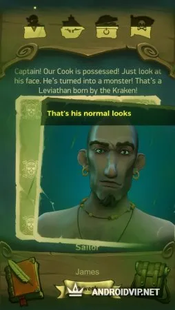 Морские сражения не покажут вам всю зрелищность, а сами бои выполнены в пошаговом стиле. Используя ту или иную карту, ваш корабль будет наносить урон вражескому кораблю или защищаться. Находите тонкий баланс между защитой и нападением, чтобы привести свою команду к успеху! Также не забывайте брать корабли на абордаж, чтобы пополнить казну, повысить свой уровень славы и получить дополнительные вещи для улучшения собственного корабля. Для успешного взятия на абордаж необходимо сразить вражескую команду и самого капитана. Не забывайте, что злую шутку могут сыграть не только вражеские корабли, но и могущественный Кракен, который где-то дремлет в глубинах океана!