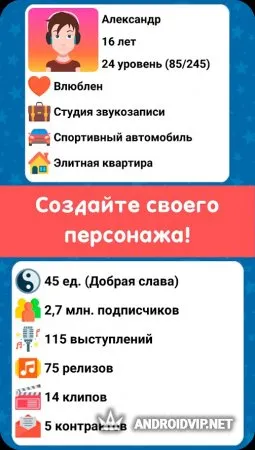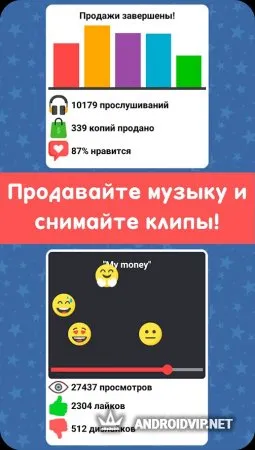 Помимо основного занятия музыкой, главный герой может заниматься съёмкой различных клипов на свои треки, открывать другие виды бизнеса и заводить семью. Клипы снимаются по такой же схеме, как и создаются треки – выбираете стилистику и жмёте кнопку записи. Количество положительных отзывов и лайков на произведениях главного героя будут базироваться на качестве творчества. Качество производимого материала можно повышать, покупая различные улучшения в магазине. Купив домашнюю студию, придётся раскошелиться на консольные компрессоры, эквалайзеры и так далее. Панель управления тоже лишней не будет. Но хорошенько вложившись можно открыть другую стезю бизнеса – подрабатывайте звукорежиссером, выполняя различные заказы. Реклама отлично скажется на вашей репутации.
