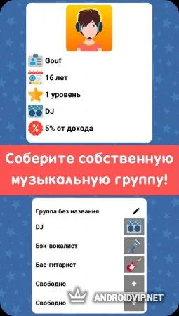 Присоединяйтесь к уже готовым или создавайте свою группу, но не забывайте про эффектное название. Роль также придётся выбрать самостоятельно: становитесь эмоциональным вокалистом, гитаристом с высокой долей энтузиазма или отправляйтесь за новыми барабанными палочками, ведь вы – самый важный человек в группе! Набрав хорошую популярность, вы сможете пригласить в свою группу реальных кумиров или собственных друзей. Разработайте логотип, дайте название – и вперёд на репетиционную базу!