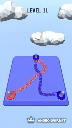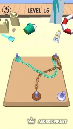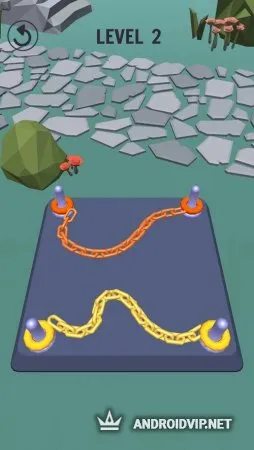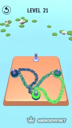 Go Knots 3D - это красочная головоломка, в которой задача игроков состоит в том, чтобы распутать цепи. Начните игру и выясните, как можно рассортировать цепи, висящие на специальных фиксаторах. Снимайте кольцо одной цепочки и пробуйте варианты, вешая её на другой фиксатор. Необходимо найти ту последовательность таких перемещений, которая в конце концов распутает цепи.