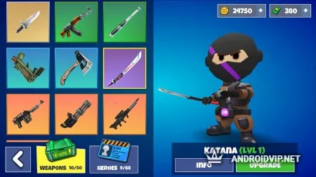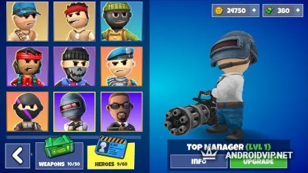 Есть как одиночные режимы игры, так и многопользовательские. Помимо оружия вы можете открывать новых персонажей. Их здесь тоже немало, целых 68! Из известных личностей можно узнать агента из "Людей в чёрном" и Джона Рэмбо. Все они ждут, когда вы возьмёте их под своей контроль и позволите бесчинствовать. Мочите врагов одного за другим и поднимайтесь по игровому рейтингу.