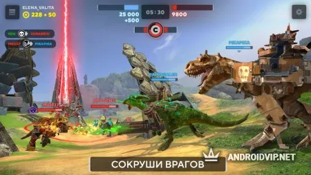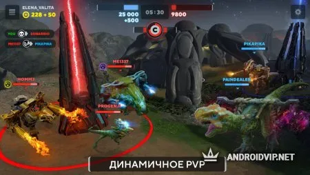 Все динозавры очень индивидуальны как внешне, так и по своим параметрам. Соберите свою коллекцию этих монстров и участвуйте в битвах против остальных игроков на шести большущих картах. Высокая растительность, раскалённая лава и другие природные элементы нах них могут как помочь вам, так и сыграть против вас. Докажите, что вы самый лучший тренер динозавров!