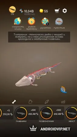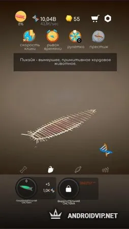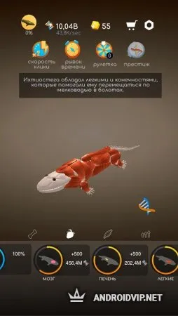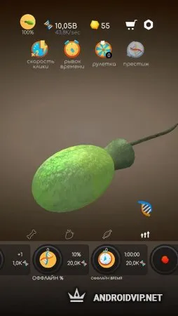Вас ожидает интересный процесс прокачки, залипательные образы живых созданий, а также незабываемый опыт создателя. Для развития своего микроорганизма присутствует валюта и действия, позволяющие получать эту самую валюту. для перехода на следующий этап понадобится купить все необходимые части текущего организма. Чем дальше игрок продвинется в развитии, тем больше органических деталей ему придётся покупать.