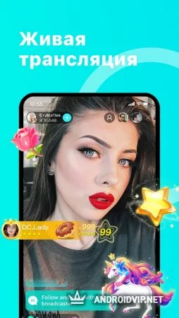 Во время проведения трансляции вы можете разнообразить свой внешний вид, используя различные стикеры и видео-фильтры, которые доступны в приложении изначально. Можно добавить не только корону, но и кошачьи ушки! Общайтесь с людьми со всего мира, устраивайте совместные исполнения известных песен, обменивайтесь впечатлениями о каких-либо событиях и просто получайте приятные эмоции.