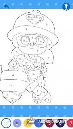Игровой процесс заключается в раскрашивании рисунков по номерам. В качестве заготовок используются контуры героев. Вам достаточно выбрать один из цветов и нажать на необходимую область, чтобы начать рисовать. Подсказки помогут вам, если появятся затруднения с выбором цвета.